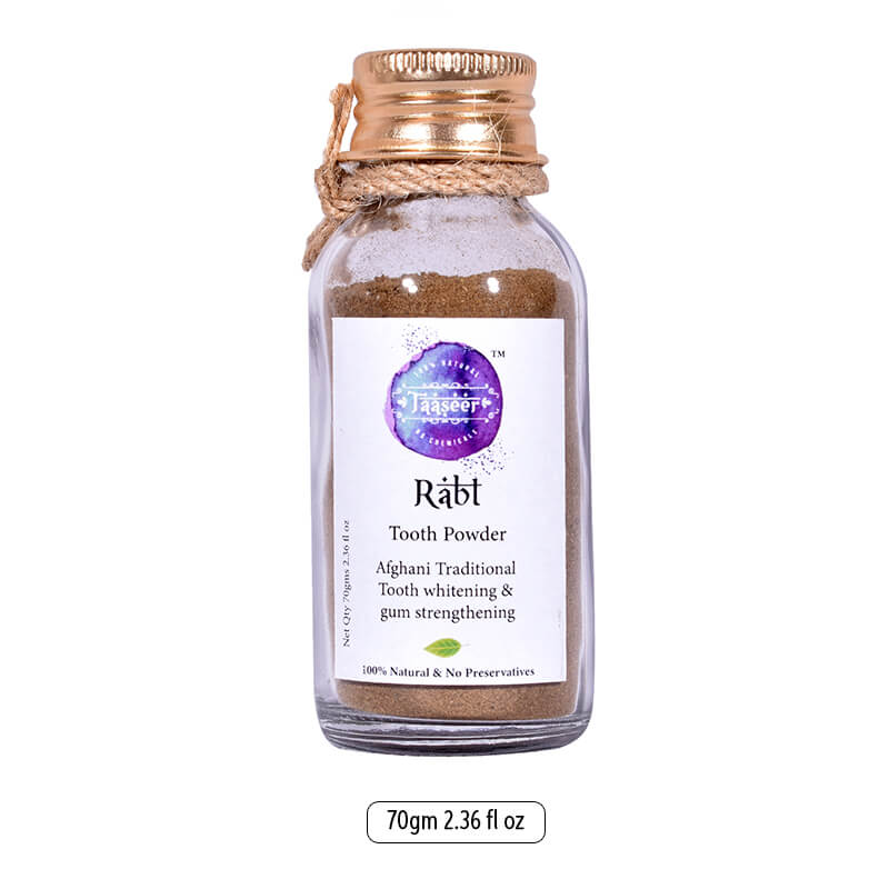 Taaseer’s tooth powder is a traditionally used tooth powder for many centuries in the Persian culture. Rabt toothh powder takes a special place as it avoids tooth damages and blood leakages int he teeth. It is prepared in traditional way with original raw materials.